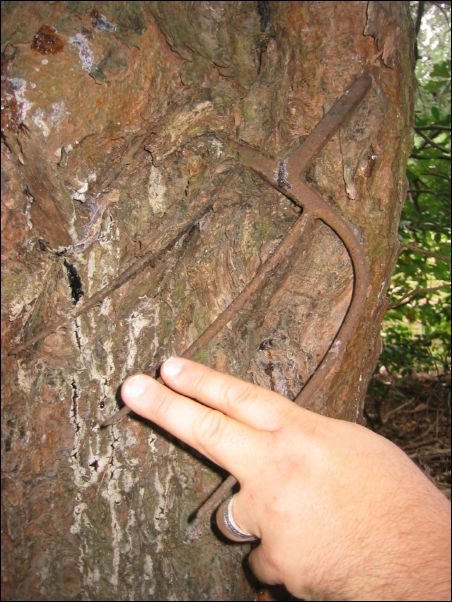 Pichfork was stuck in the root, now over 5 feet off the ground